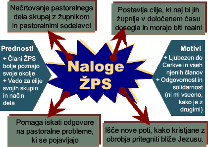 Člani ŽPS-a so predstavniki župljanov in ne njihovo nadomestilo. K vključevanju v življenje župnije smo namreč poklicani vsi župljani, ne le člani ŽPS-a. Člani ŽPS-a ne morejo edini prevzemati bremen posamičnih župnijskih aktivnosti, nalog, prireditev, akcij, ampak v ta namen v svojih domačih okoljih organizirajo skupine vernikov ter se tudi sicer vestno trudijo najti poti in načine, kako pritegniti k življenju župnije čimvečje število ljudi iz obrobja.